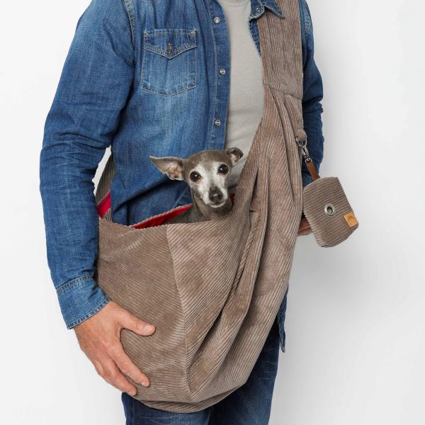 FiouStar Crossbag Summer Cord Taupe, eine Hundetragetasche bequem und leicht, für den komfortablen Transport.