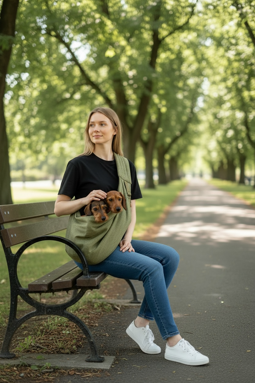Dir Tasche ist perfekt geeignet für lange Wanderungen, Spaziergänge am Meer, aber auch um den kranken Hund zu tragen.