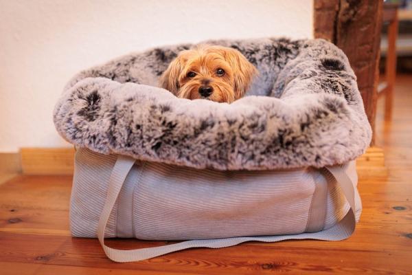 Die kuschelige Hundehöhle aus Kunstfell und Cordstoff ist ein äußerst vielseitiges und komfortables Produkt, das sowohl als Bett für Zuhause als auch als praktische Tasche für unterwegs genutzt werden kann. Diese Höhle wurde speziell entwickelt, um deinem Hund einen gemütlichen und sicheren Rückzugsort zu bieten, egal wo du dich befinden.