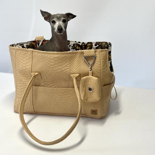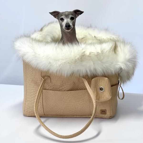 Luxushundetasche in Echtleder, in Croco geprägtes Leder.