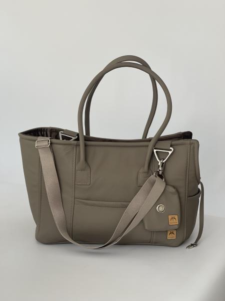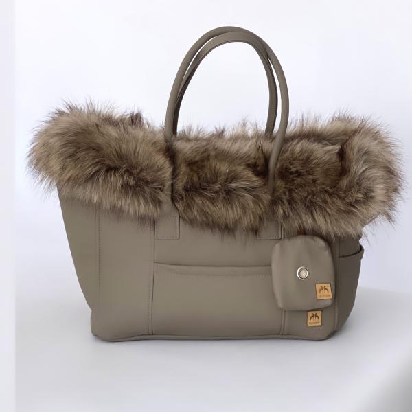 Luxushundetasche in Echtleder, weiches Nappaleder in einen wunderschönen Taupe.