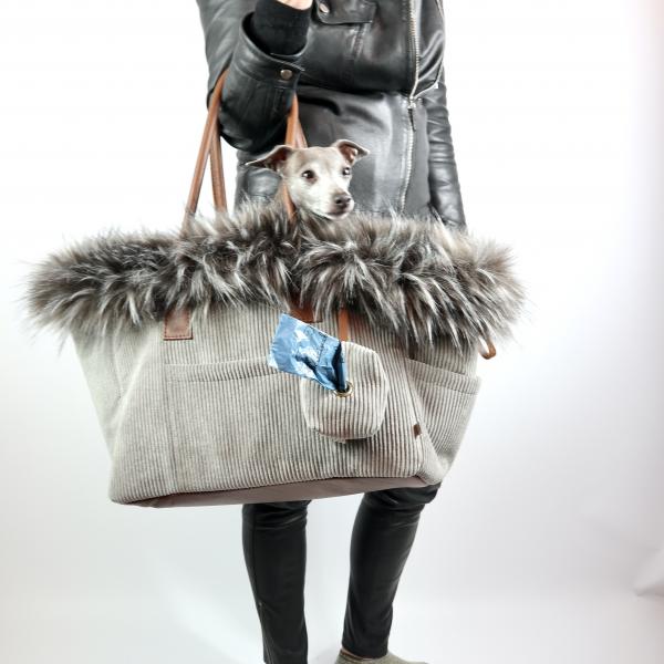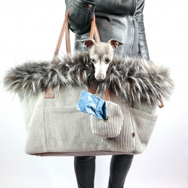 Eine Tasche für Hunde mit weichen kuscheligen Fell ( Kunstfell) und Cord Decorstoff. Welcher Hund möchte nicht in so einer gemütlichen Tasche getragen werden. Wichtig ist uns, dass die Tasche gleichzeitig als Reisebett genutzt werden kann und für das ganze Jahr geeignet ist.