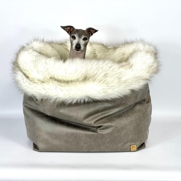 Das Kunstfell im Inneren des Sacks bietet deinem Hund eine kuschelige und warme Umgebung, während das Kunstleder an der Außenseite dem Sack eine robuste und edle Optik verleiht.