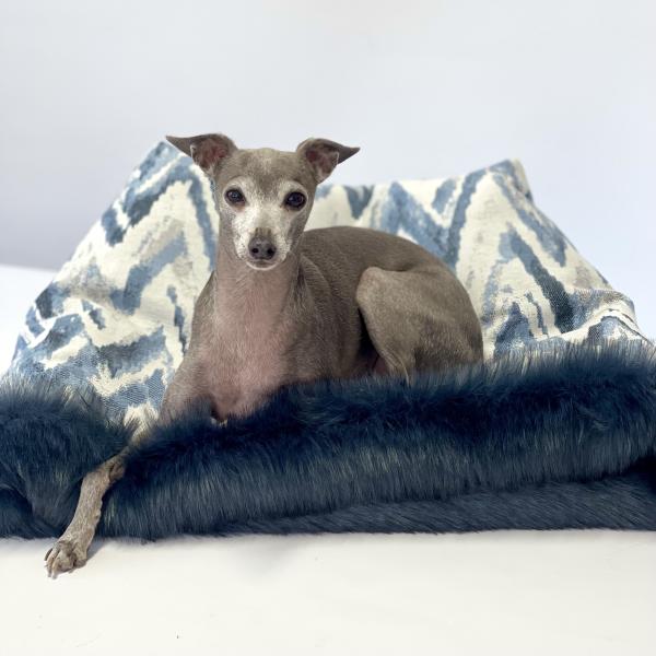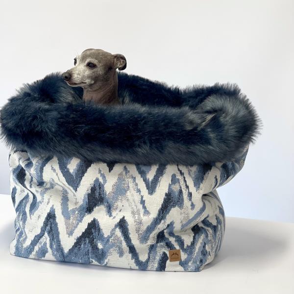 Ein Traumhafter Stoff für Alle die nach etwas Besonderen suchen. Das Muster im Ballearischen Stil passt sich zeitlos in eine moderne und elegante Umgebung ein. Das besonders hochwertige und sehr weiche Kunstfell ist dick und kuschelig. Da kann sich jeder Hund nur glücklich darin betten.