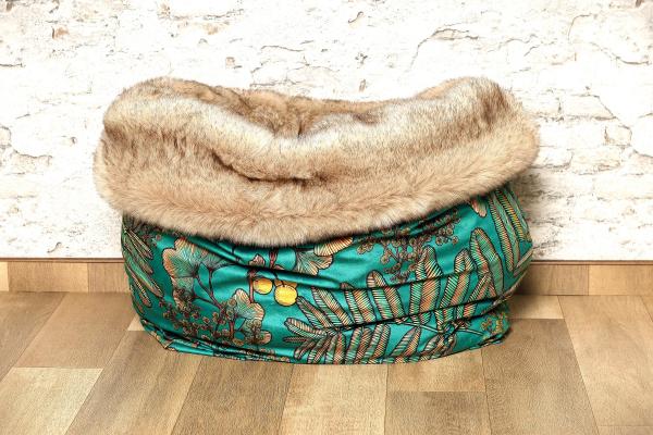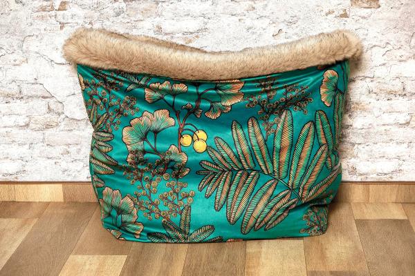 Das besondere Hundebett mit design Decorstoff in Velour und extravaganten Ginkgo Muster Ginkgo Türkise.