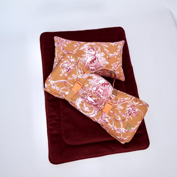 Der Veloursstoff auf einer Seite der Decke ist besonders weich und angenehm für deinen Vierbeiner. Er bietet eine gemütliche Oberfläche zum Ausruhen und Schlafen. Die flauschige Textur des Velours sorgt für ein angenehmes Gefühl. Die andere Seite der Decke ist mit einem Toile de Jouy Muster versehen.