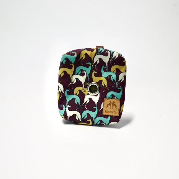 Schicker Hundekotbeutel, Kotbeuteltasche aus Baumwolle mit Windhundmotiv in Braun.